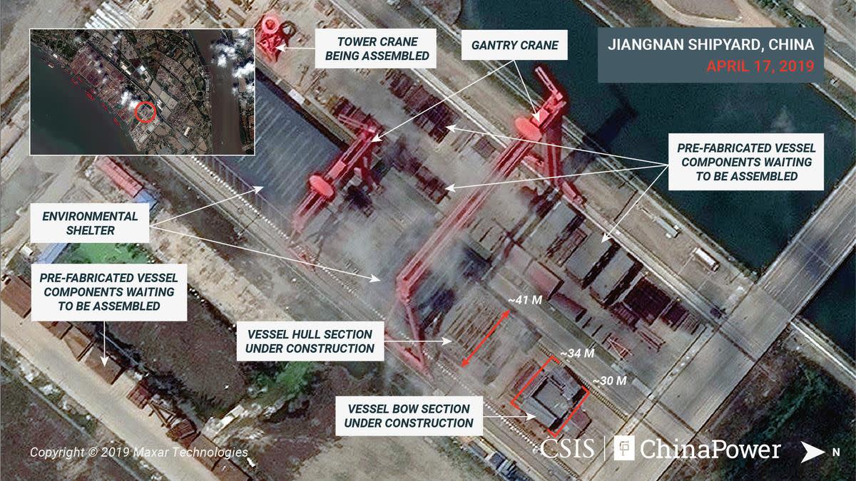Η Κίνα σύμφωνα με δορυφορικές εικόνες που έχουν ληφθεί, κατασκευάζει ένα αεροπλανοφόρο μεγαλύτερο από όλα τα άλλα. Η Κίνα δεν έχει επιβεβαιώσει επισήμως ότι κατασκευάζει ένα τρίτο αεροπλανοφόρο, αλλά οι εικόνες που λήφθηκαν δείχνουν σημαντική και μεγάλη δραστηριότητα τους τελευταίους έξι μήνες στο ναυπηγείο Jiangnan έξω από τη Σαγκάη.Τα λέγαμε εδώ ....