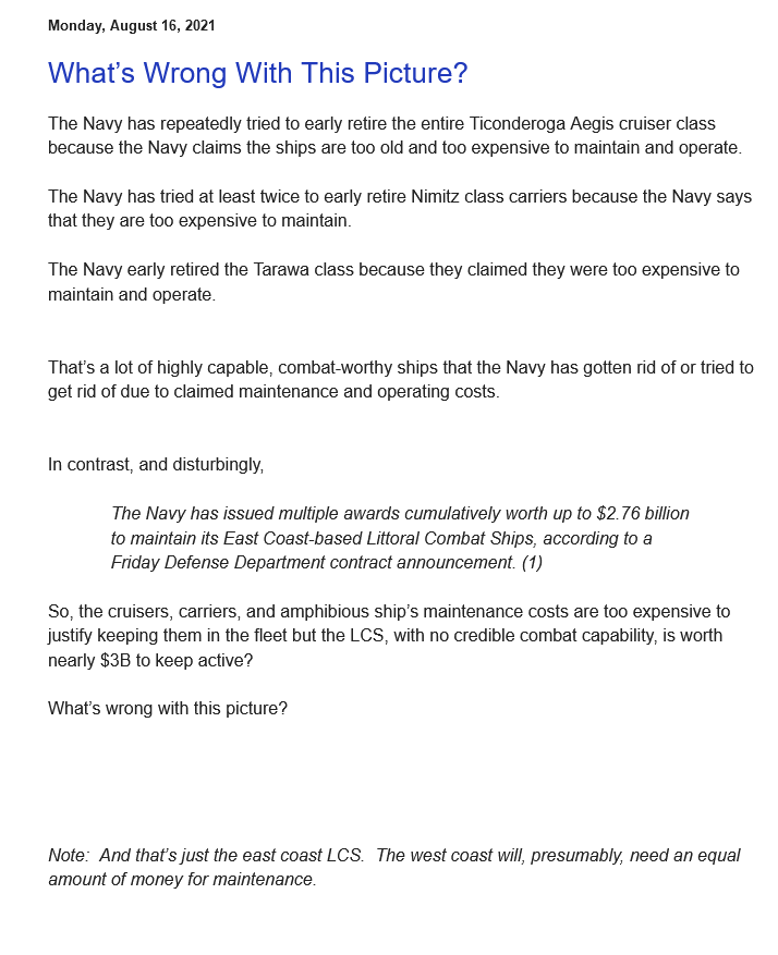Αυτά να τα βλέπουν μερικοί κουφιοκεφαλάκηδες που πασχίζουν να μας τα φορέσουν. Καλό ψάξιμο. Ρίχνει και ένα κράξιμο στο 57αρι των lcs & Constellation. ΕΔΩ. Kαλημέρα σε όλους .