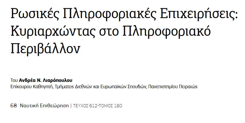 Ρωσικές Πληροφοριακές Επιχειρήσεις: Κυριαρχώντας στο Πληροφοριακό Περιβάλλον.