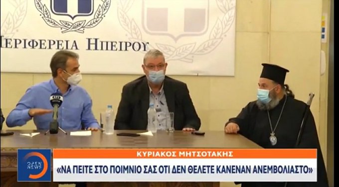 Συγκεκριμένα ο Κυριάκος Μητσοτάκης βρισκόμενος σε μία περιοδεία του στην Ήπειρο, κατά τη διάρκεια μιας σύσκεψης στην Περιφέρεια Ηπείρου, ενώ πρώτα ευχαρίστησε τον Μητροπολίτη Ιωαννίνων κ.κ. Μάξιμο για την έως τώρα συνεισφορά του, του ζήτησε να… πιέσει τους πιστούς να εμβολιαστούν, λέγοντας με έμφαση: